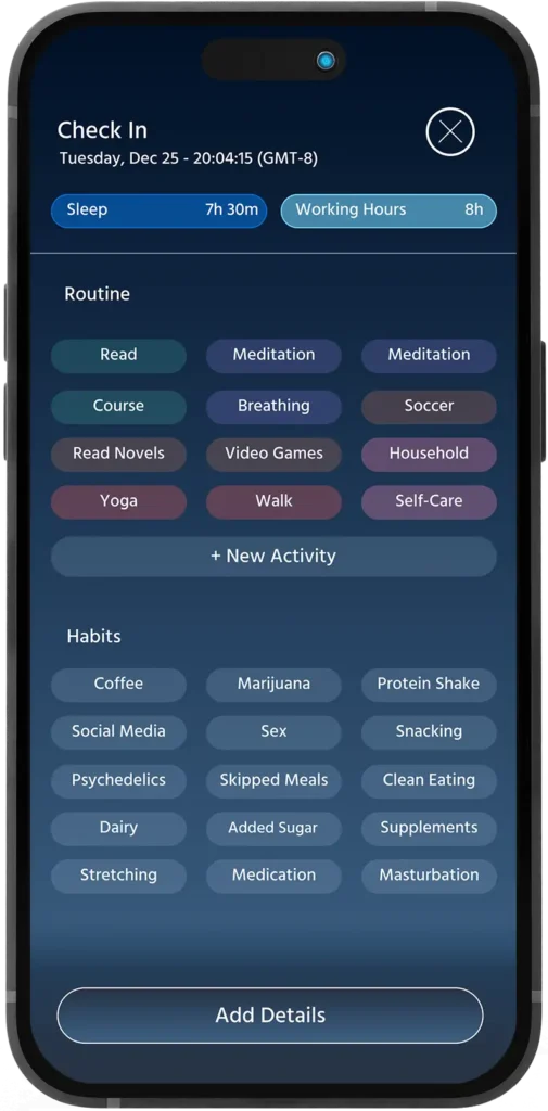 Connect your wearables, calendars and devices to visualize your health and lifestyle at all times.